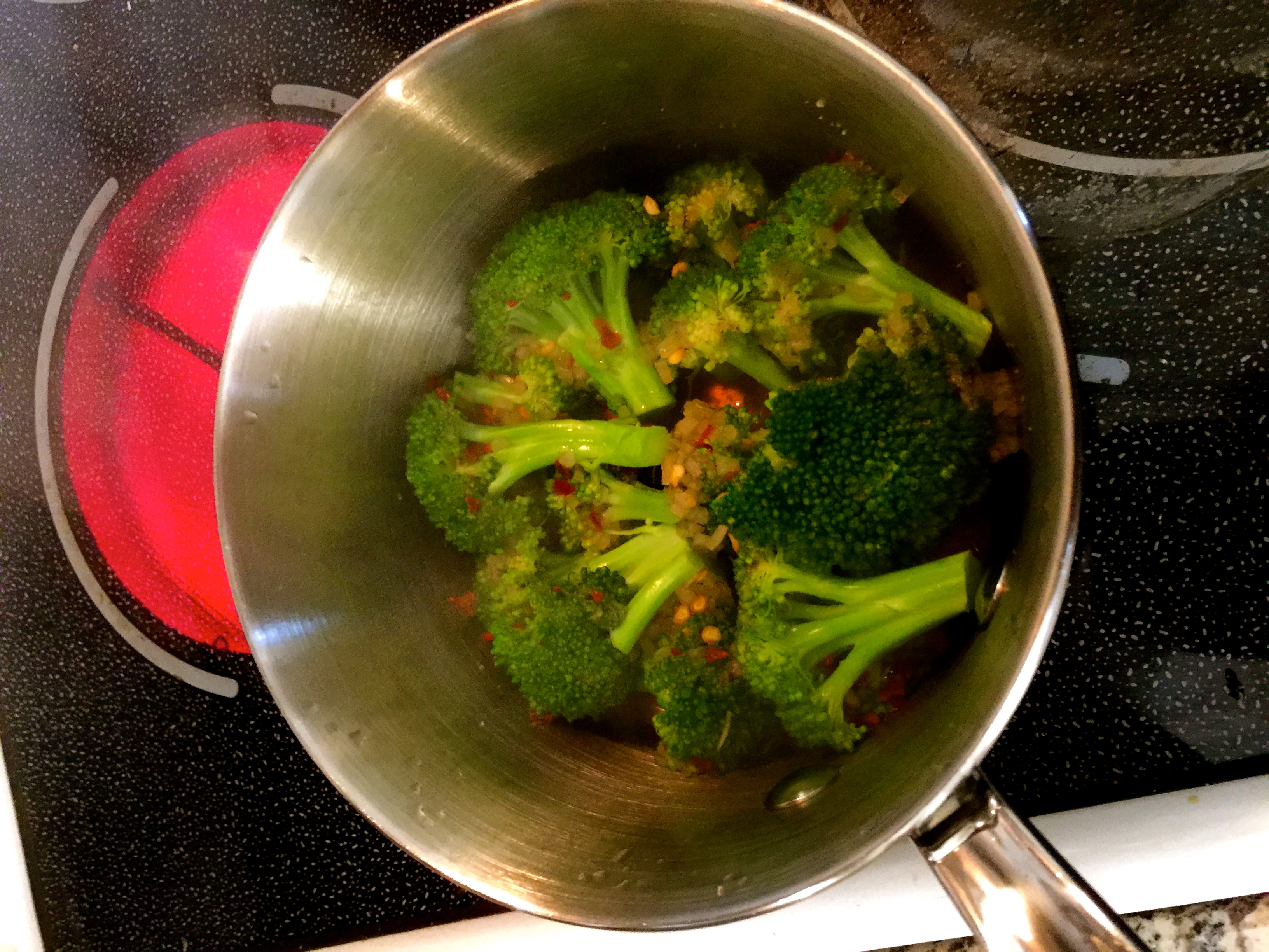 Put your florets in the sauce pan and stir it to coat.