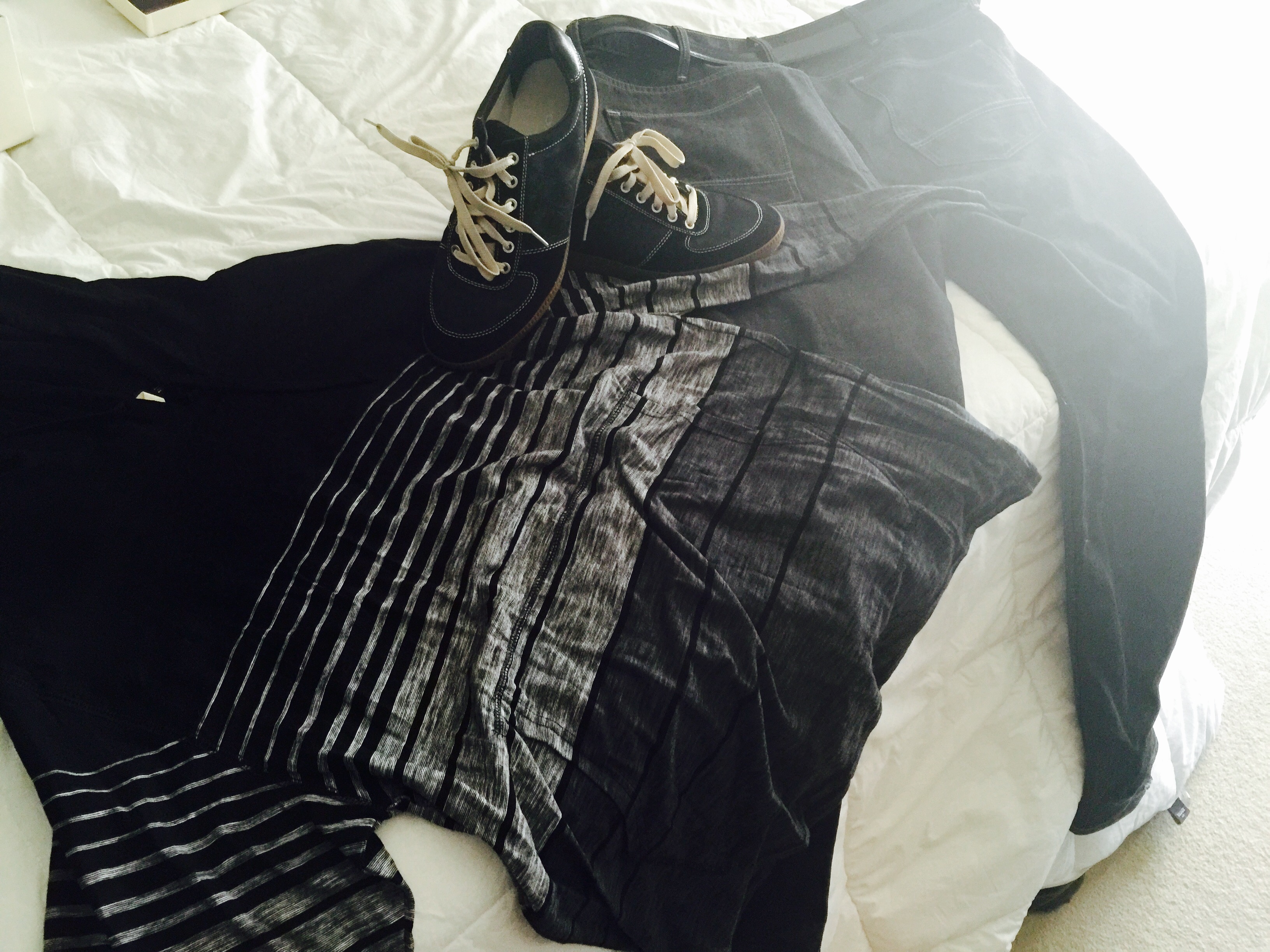 Day Look: Gray and Black Striped Henley, Gray Denim, Leather Chucks, New Aviator Sunglasses